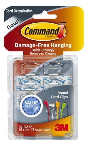 No more dangerous, tangled cords behind your computers, appliances and entertainment centers. Command Cord Organizers are perfect for work and home offices, as well as entertainment areas, where they keep cords organized and safely out of the way. Command Cord Organizers hold strongly on a variety of surfaces, including paint, wood, tile and more. They also come off cleanly-no holes, marks, sticky residue or stains-and if you need to re-organize your cords, it's as easy as applying a Command Refill Strip, so you can use them again and again.